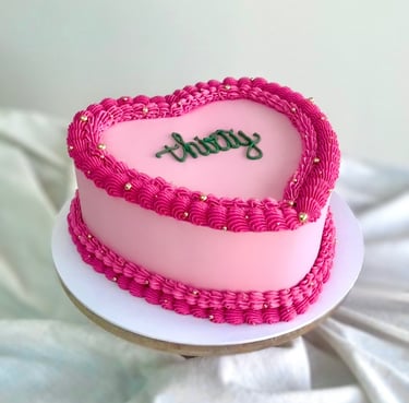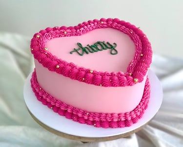 This classic vintage style is a real crowd pleaser. With elegant piped borders and the option to customise your message on the top, you're sure to please. Available in round or heart shapes.