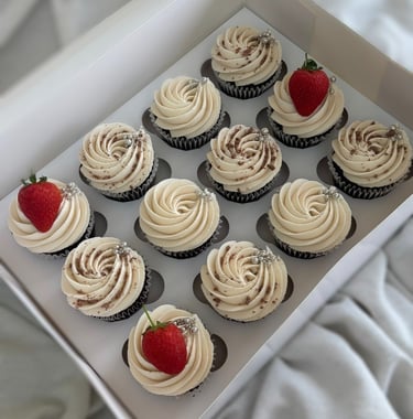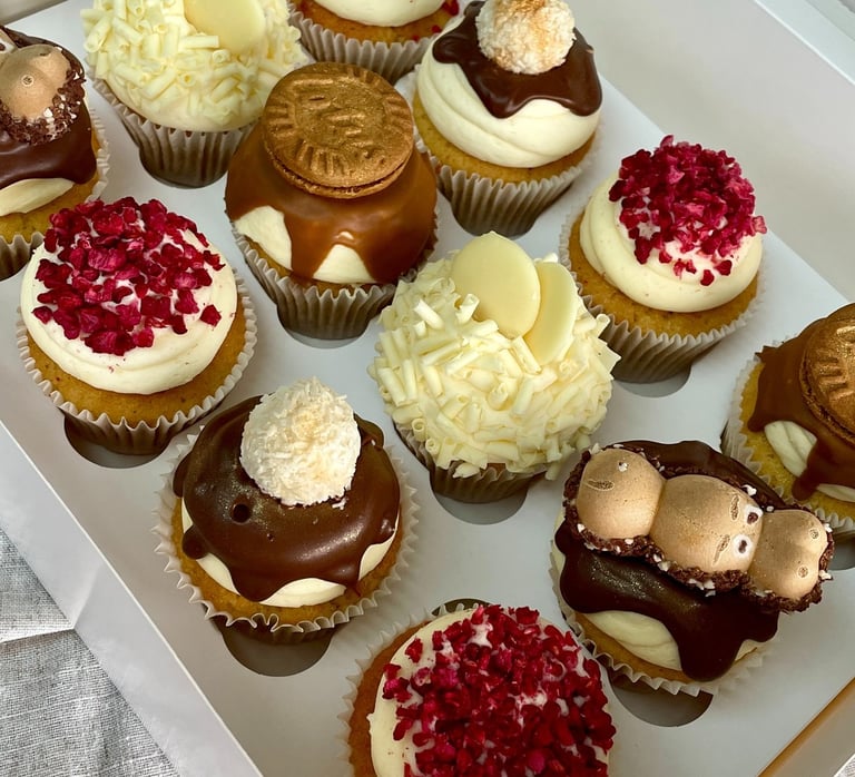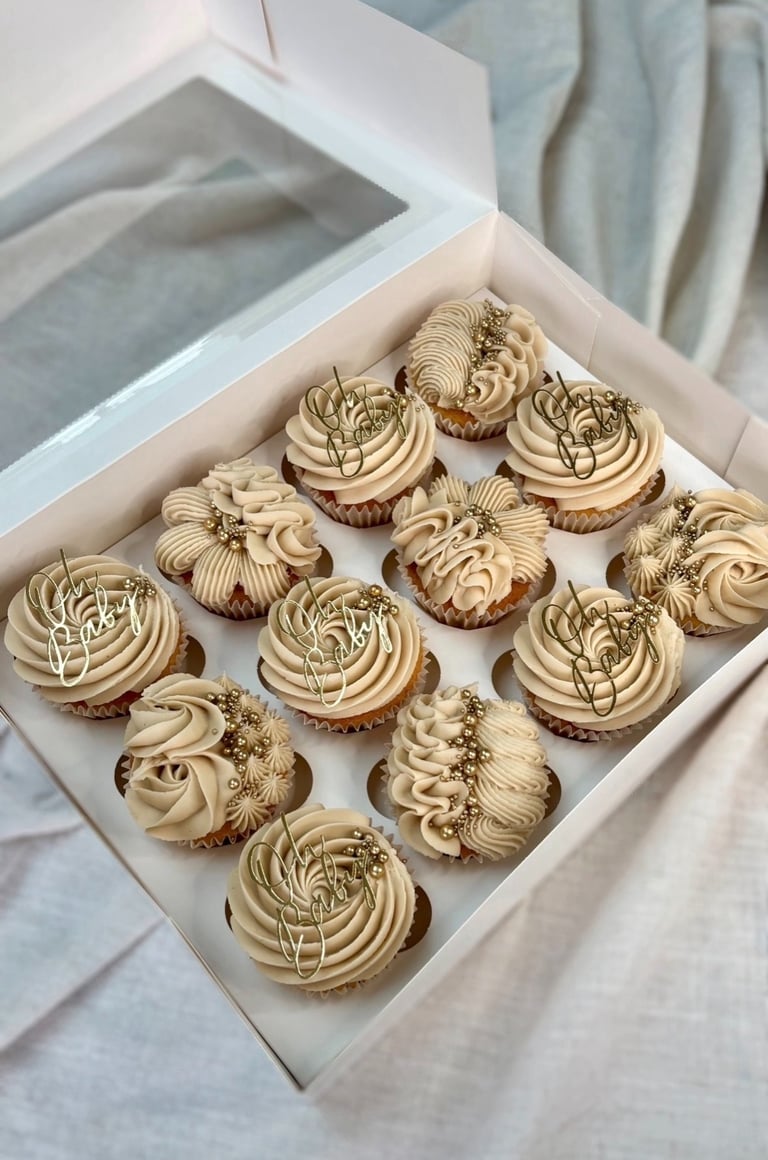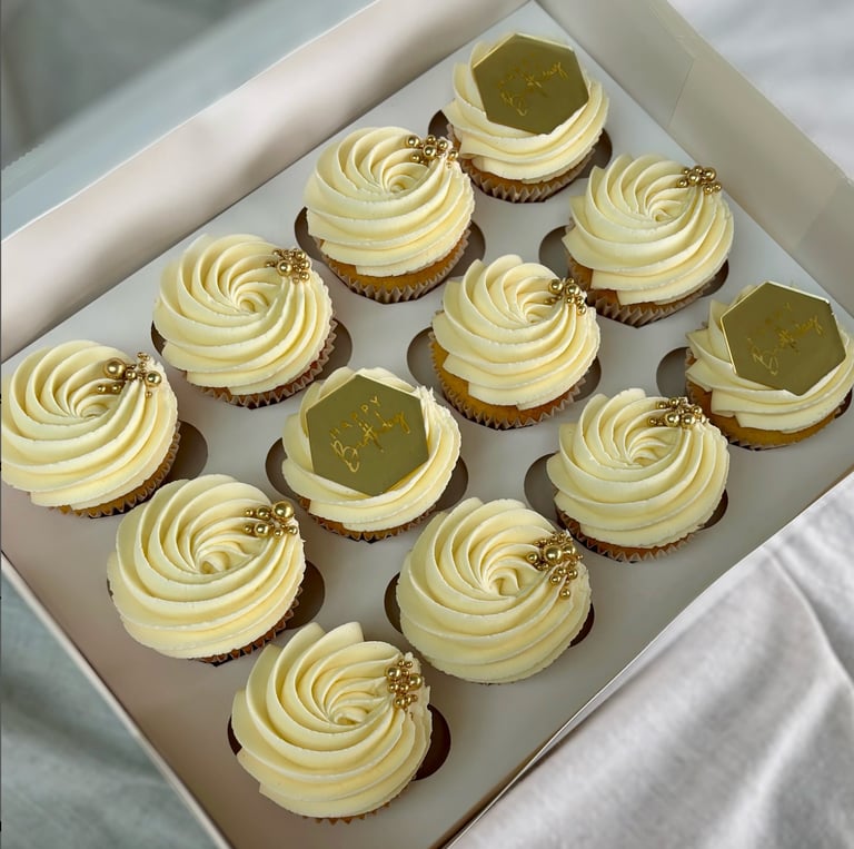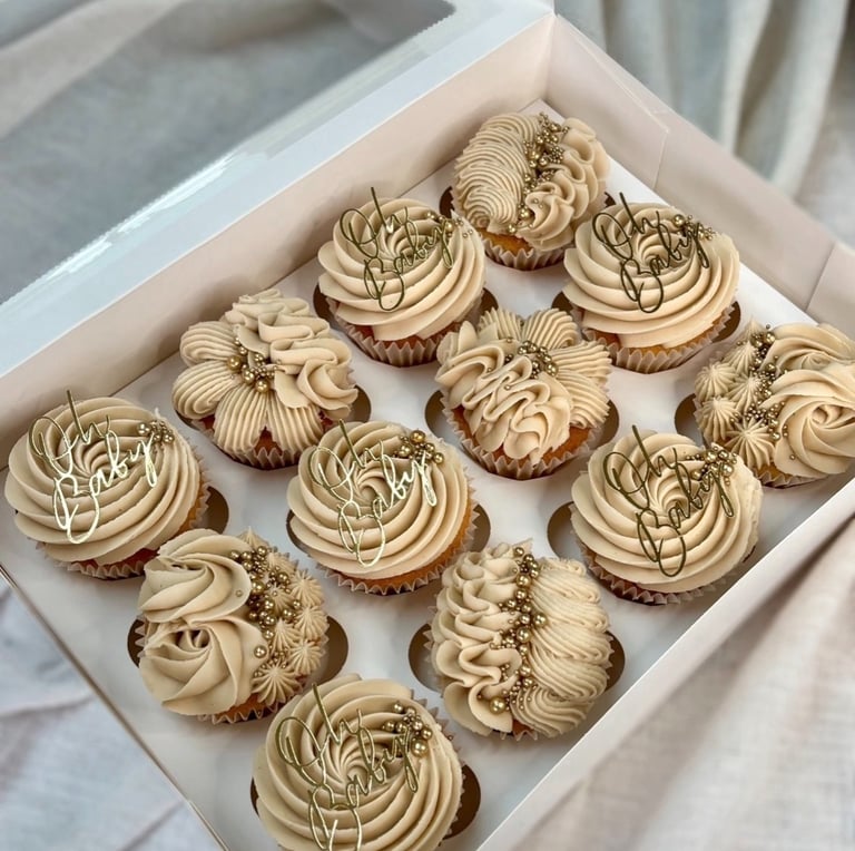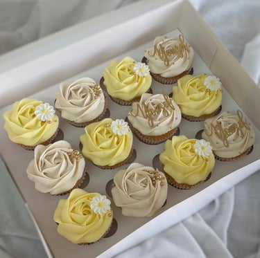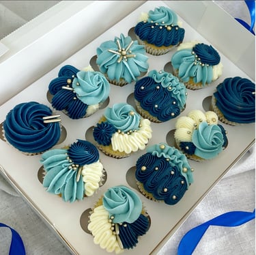 Cupcakes steal the show at birthdays, baby showers and tea parties! They also make a lovely accompaniment to your celebration cake order. Expect light fluffy sponges, piped with silky smooth buttercream in a range of colours and designs. Lucy's cupcakes are beautifully presented in a windowed box with luxury ribbon to match your order.