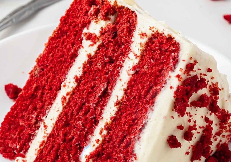 A moist, airy red sponge with subtle cocoa undertones, paired with luxurious vanilla buttercream.